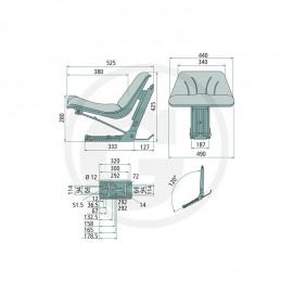 Sedile per Trattore Granit ad Applicazione Obliqua con Molleggio e Reclinabile.